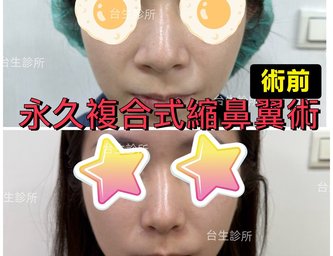 台生診所真實呈現永久縮鼻翼當日術前術後真實情形、及10天後拆線成果。